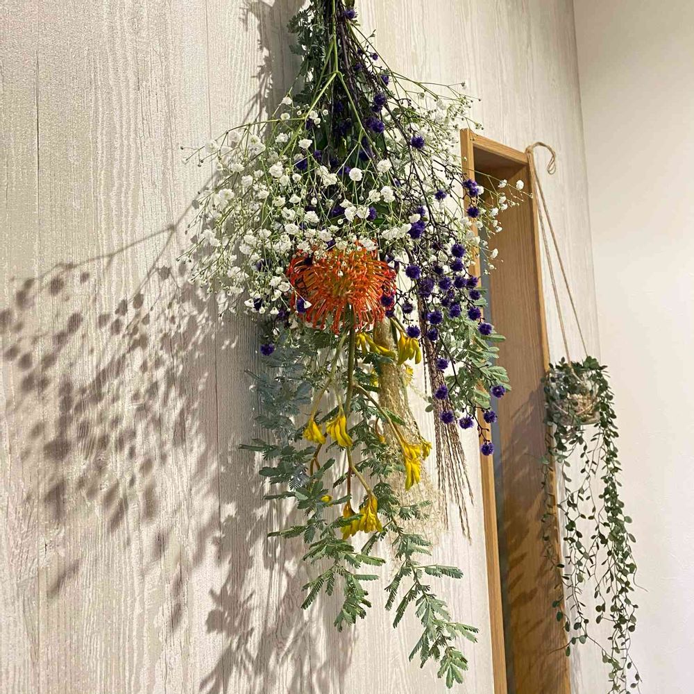 お花屋さんに寄ったらドライフラワーにするスワッグ買っちゃった💐