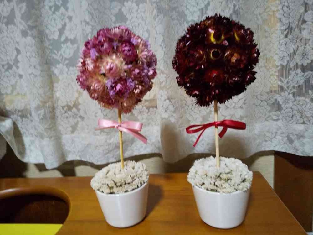 初めてドライフラワーでトピアリーを作ってみました。