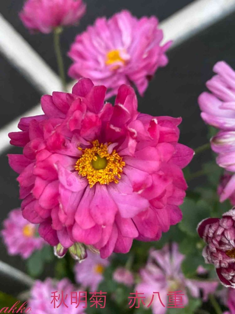 鉢植えの中で、八重のピンクが濃い花が満開です❣️