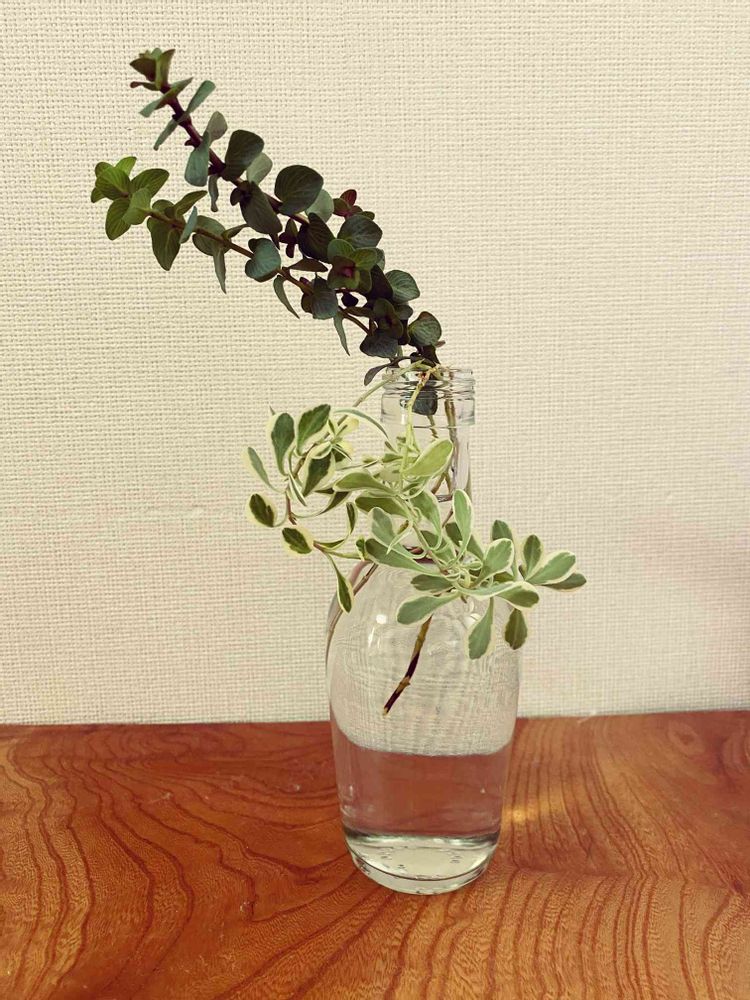 アプローチのグリーンたちが元気に育ったのでカットして生けてみた。オレガノのいい香りに癒される。