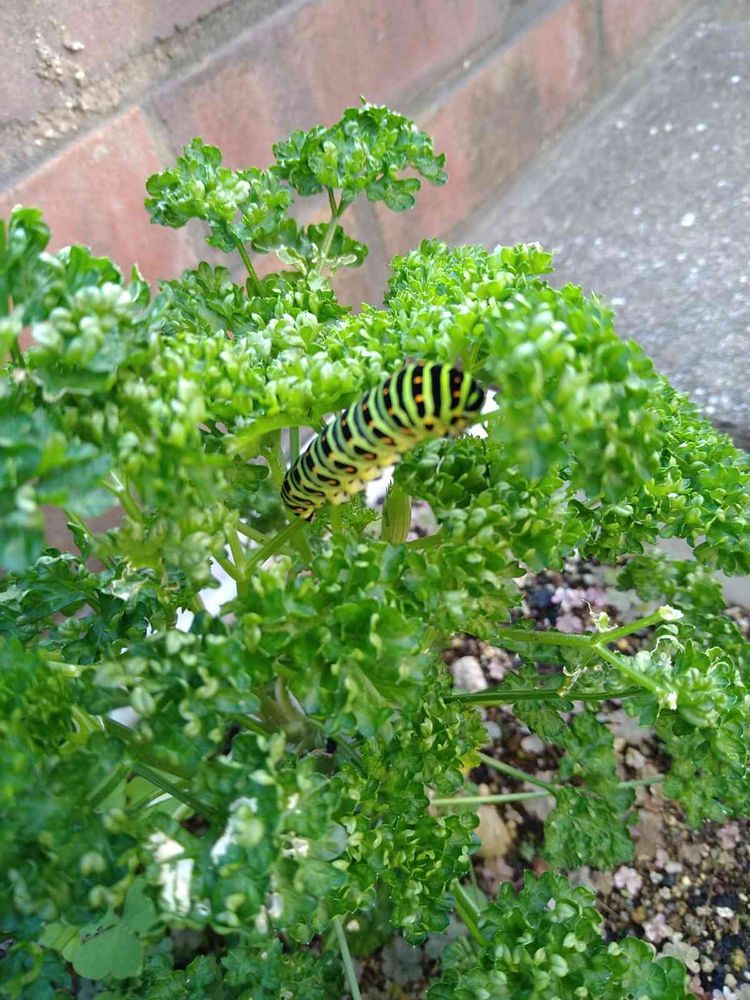 アゲハの幼虫はパセリが好きなのねー🌿🐛😵