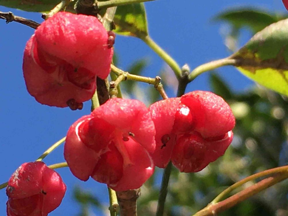 青空に真っ赤なまゆみの実❤️お出かけ先お出かけ先