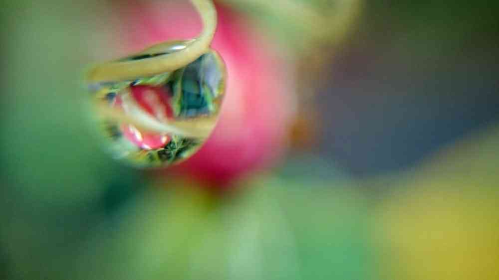 雫の中の逆さまの世界を覗くのが、雨上がりのお楽しみ♪