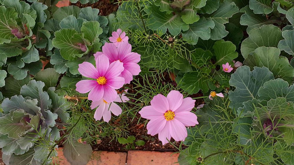 秋桜と葉牡丹