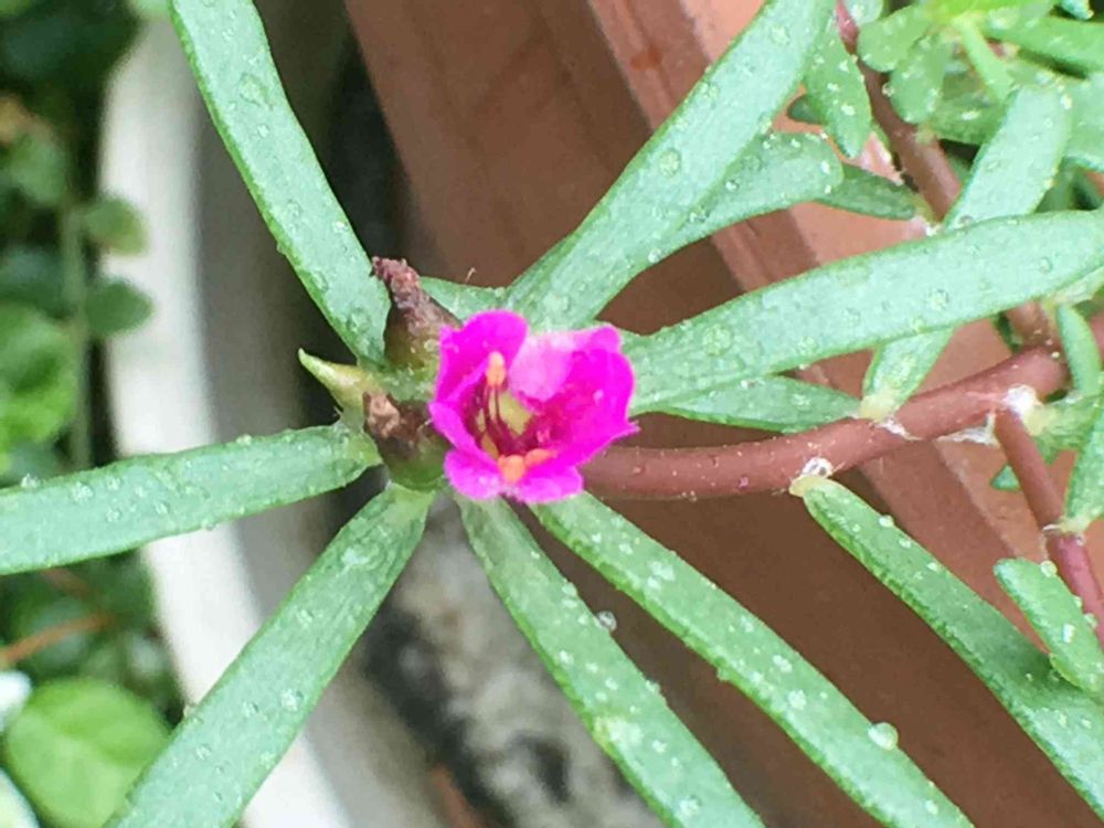 こんにちは,曇り空で少しだけ涼しい日になりました😃パラパラと雨が、小さな小さな,こぼれダネのマツバボタンが閉じはじめました😅