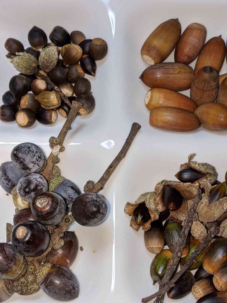 さま、スダジイの中にシラカシの実が混じっていませんか?緑色と右下のどんぐり、間違って食べると苦い❗ですよ。