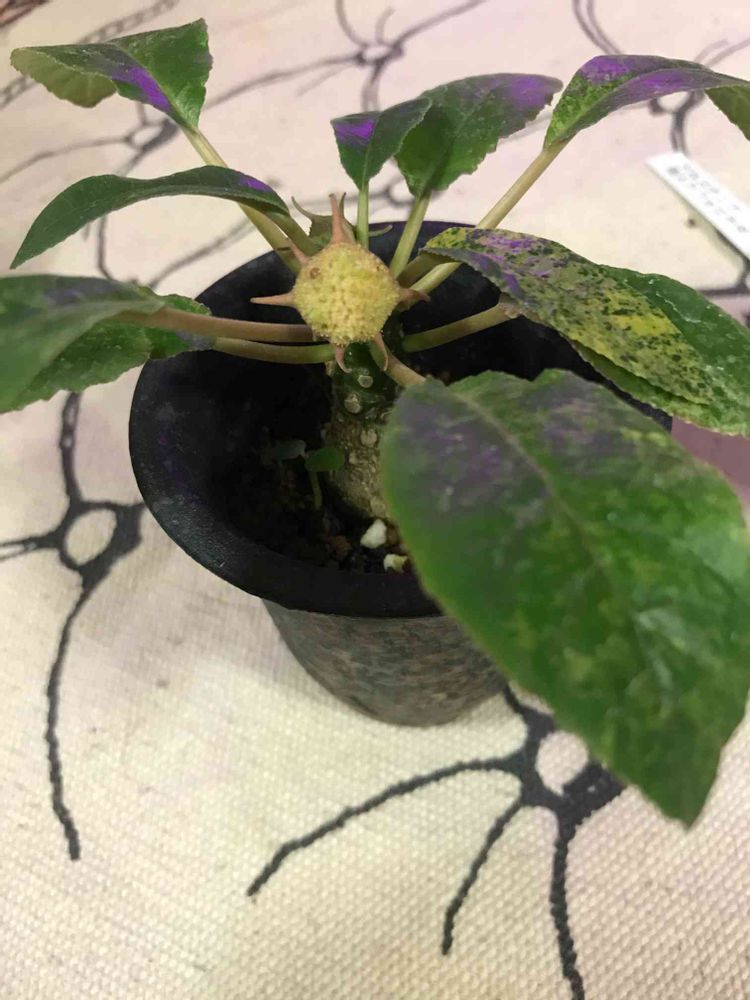 これから休眠に入りそうですが、ボツボツの塊根に珍奇な花が咲いているのが面白くてお迎え😆