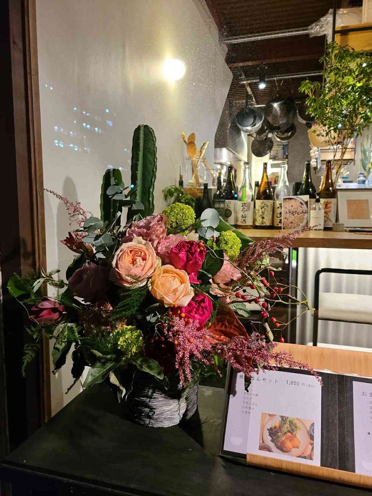 お客さんが生けられたお花だそうです🌹