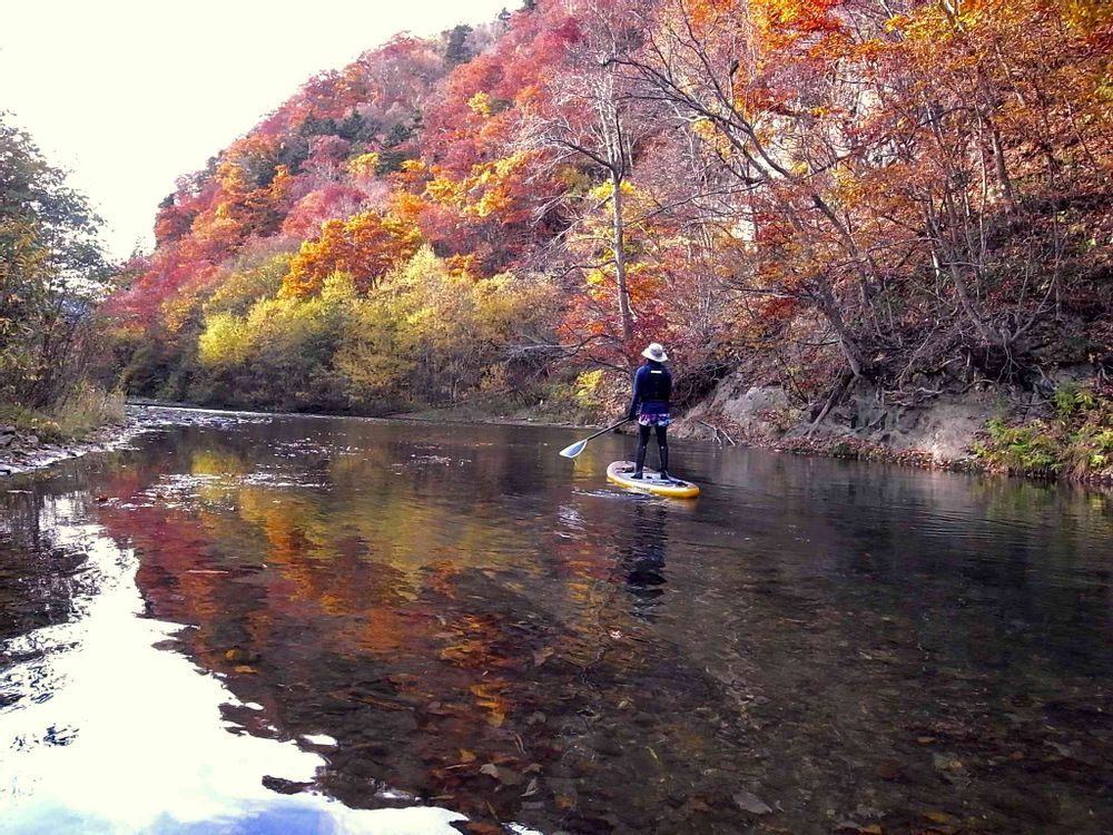 はじめたばかりの頃はハラハラしていましたが何度か乗っているうちにバランス感覚が掴めるようになり、今は景色をゆったり楽しむ余裕もあり、とっても気持ちいいです😊今年で2年目ですが、多少の波なら海でも大丈夫🙆♀️今年は水が冷たくなる時期の紅葉SUPにもチャレンジしてみました😊
