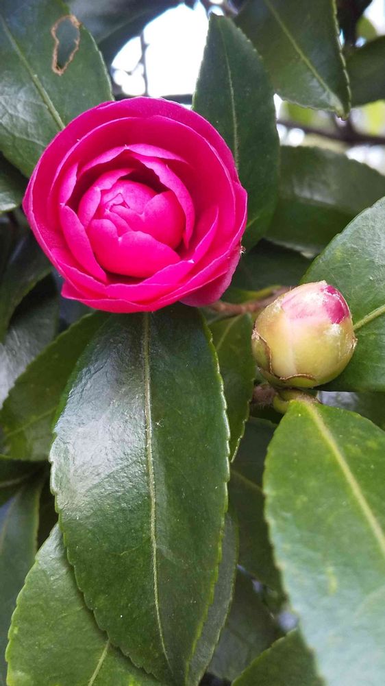 山茶花きれい 花もいいけど葉っぱも好きです ツヤツヤしてちょっと厚い葉っぱ