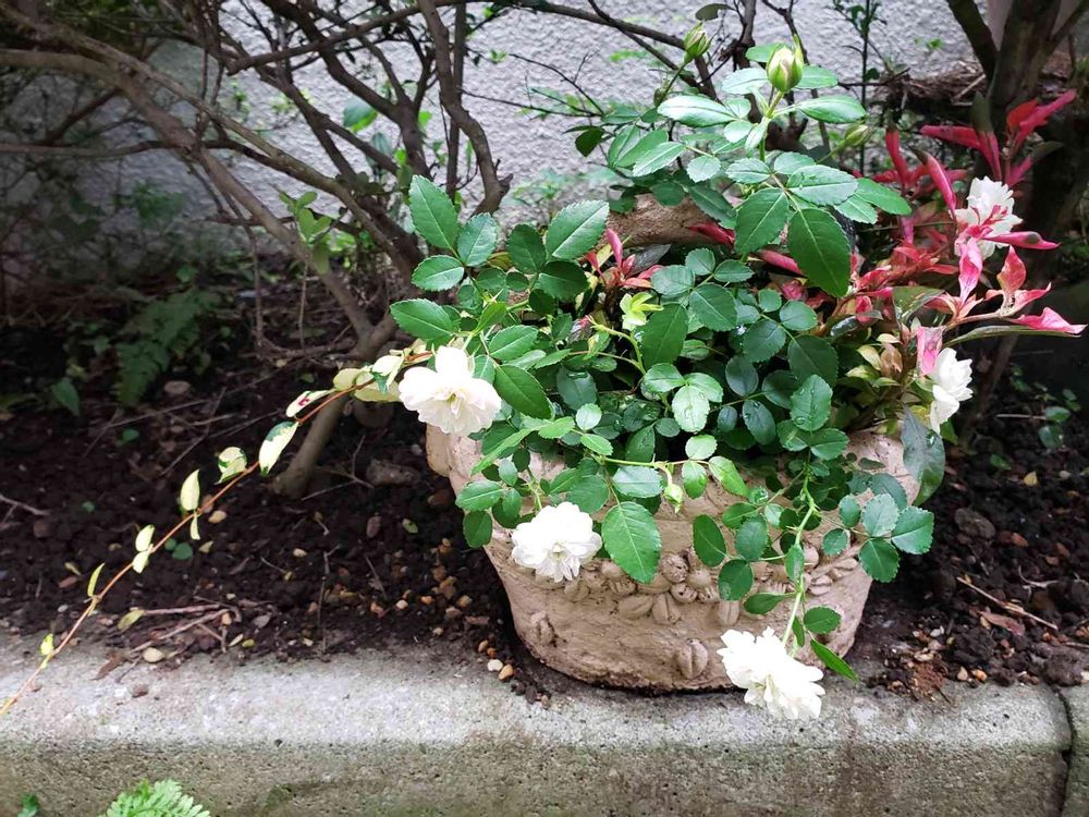 ミニバラを強そうな植物と合わせてみましたが元気に育ちますように🙏バラは敷居が高い感じがして敬遠してましたが挑戦してみました💪