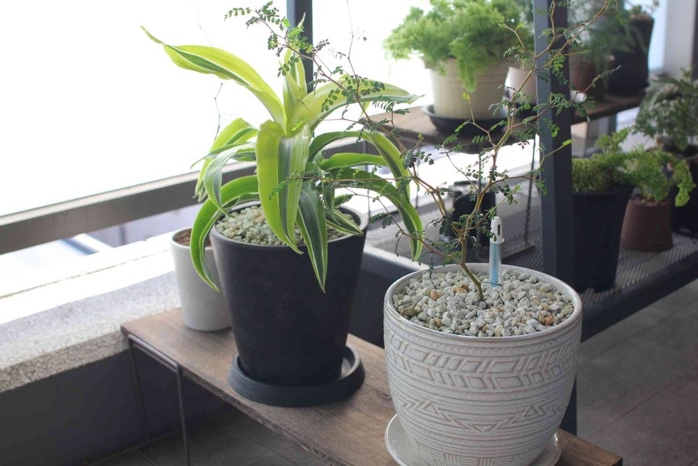 棒はサスティー(水やりチェッカー)というもので、水やり時期を示してくれるセンサーです!用土に挿して水が乾いたら青⇨白になって、色の変化でお知らせしてくれます。自分が水をやり過ぎる傾向にあるので、科学の力をお借りしています😊鉢の深さに合わせて3種類のサイズがありまして、picのは1番小さいSサイズです。