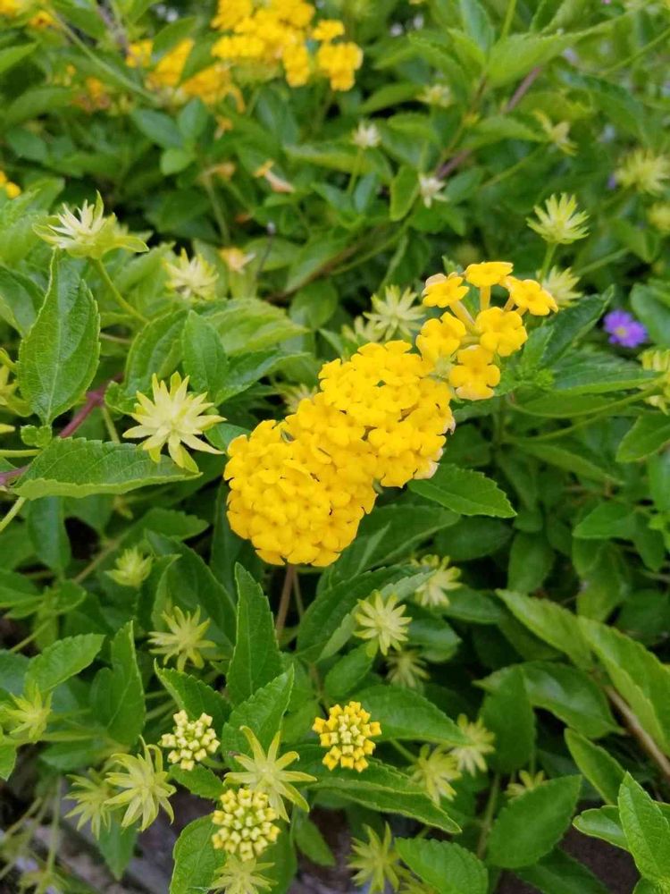 コバノランタナといえば紫しか知りませんでした💜こんなにかわいい黄色があるなんて👀!!四角い蕾もあって、素敵なpic💖もしゃもしゃがたくさんありますが、花後の萼かなにかかしら??