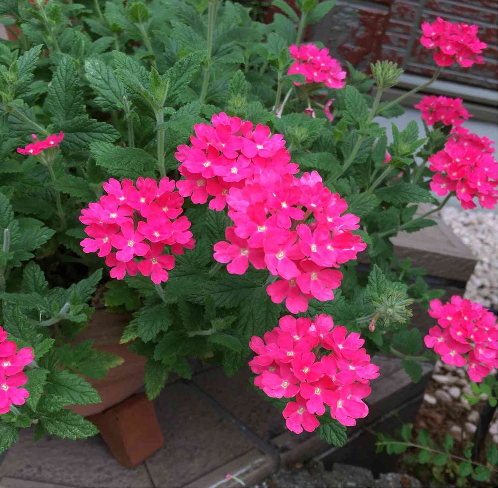 私の初投稿のバーベナなんですが、6月は薄めの可愛らしいピンクだったのに、気がつけばこんな元気な色になってました💕