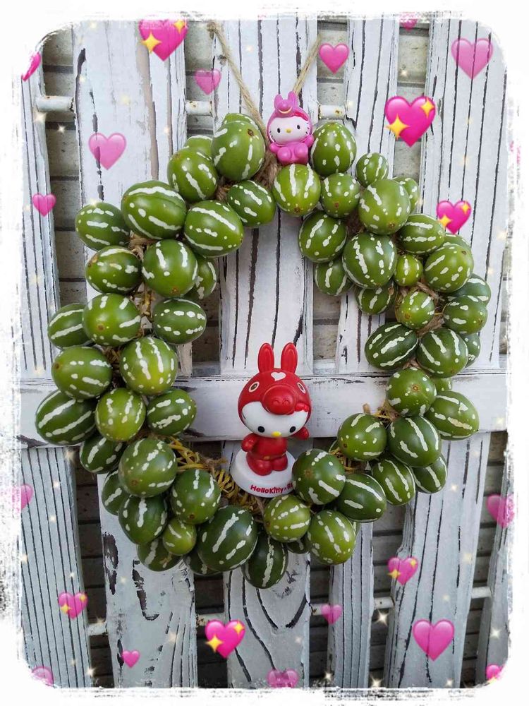 オキナワスズメウリ🍉💕リースにキティちゃん💗可愛いコラボです•*¨*•.¸¸☆*・゚ʚ(⁎•꒳̮•⁎)ɞ