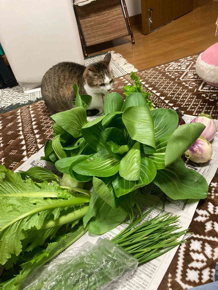 この一週間ほど暖かかったので、ちんげん菜やレタスはよく育ちました。ナスももうしばらく頑張ってもらいます。🍆