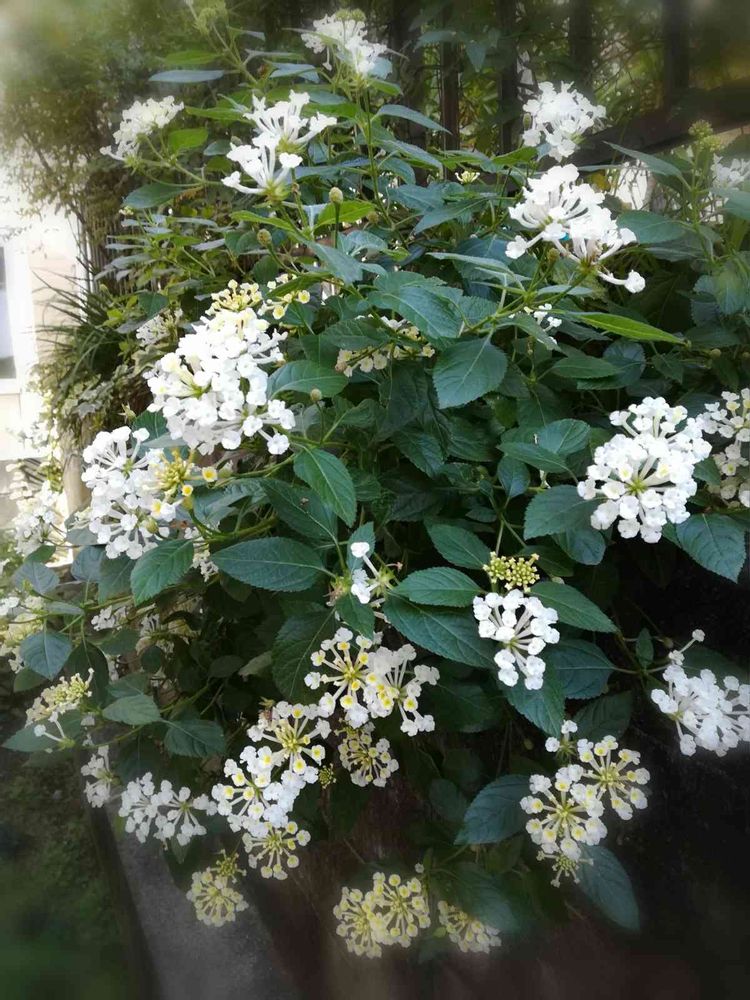 裏の壁の小さな隙間に植えたランタナが、いつの間にか大きく満開になってました😃