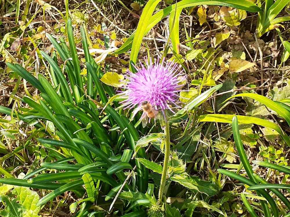 彼岸花の葉とアザミとミツバチさん