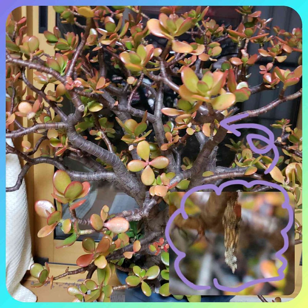 カネノナルキを室内に入れました。今年も、花が咲くかな?大分紅葉したなぁ~~と眺めていると⁉️ムムッ👀‼️💧