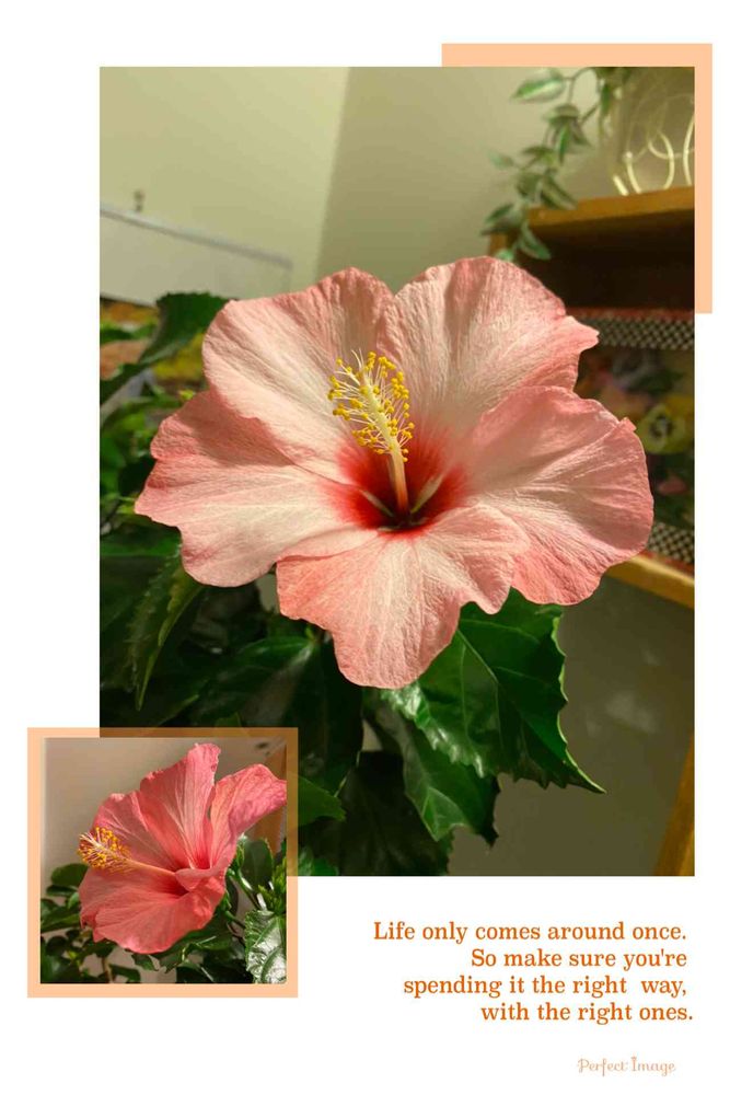 剪定しなかったハイビスカスが、日も当たらない玄関で咲きました🌺