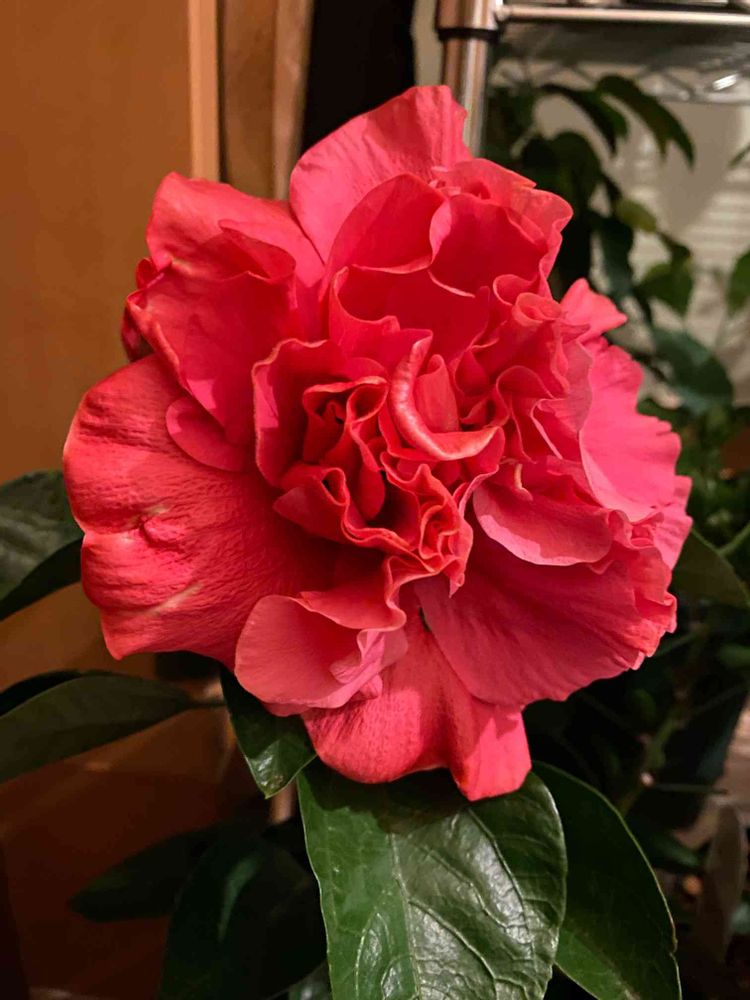 日も当たらない暗い玄関で、鮮やかに咲きました🌺