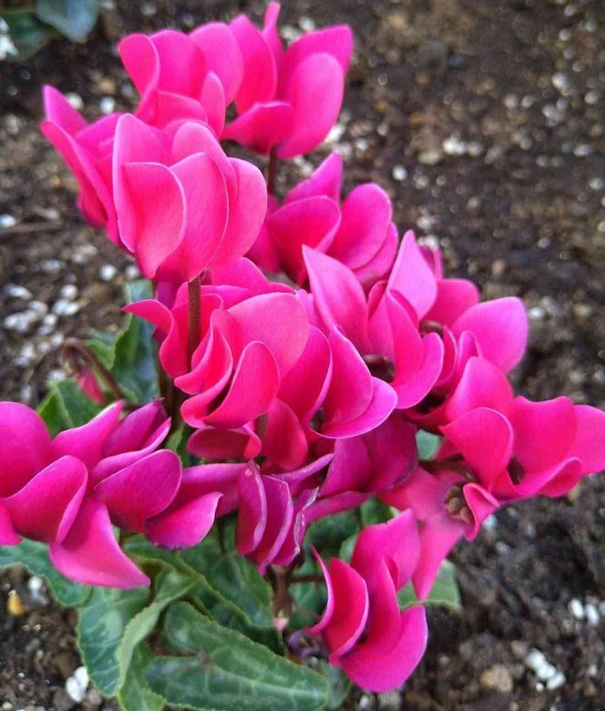 歩道脇花壇ピンクのシクラメンの花が綺麗です💕