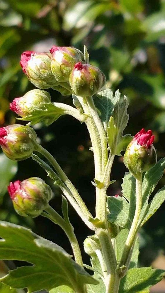 先日、蕾の時にpicした菊です。黄色かと思ってたが赤の様ですね🥰頑張ってます🤐。