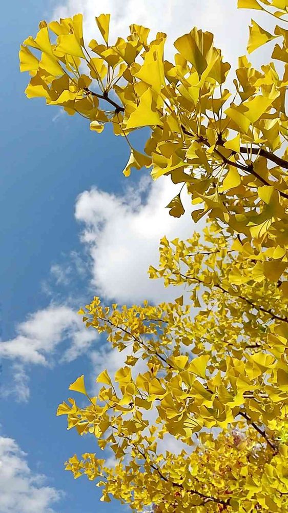 青空に黄色いイチョウがとても綺麗ですね🙆💙💛💛💛