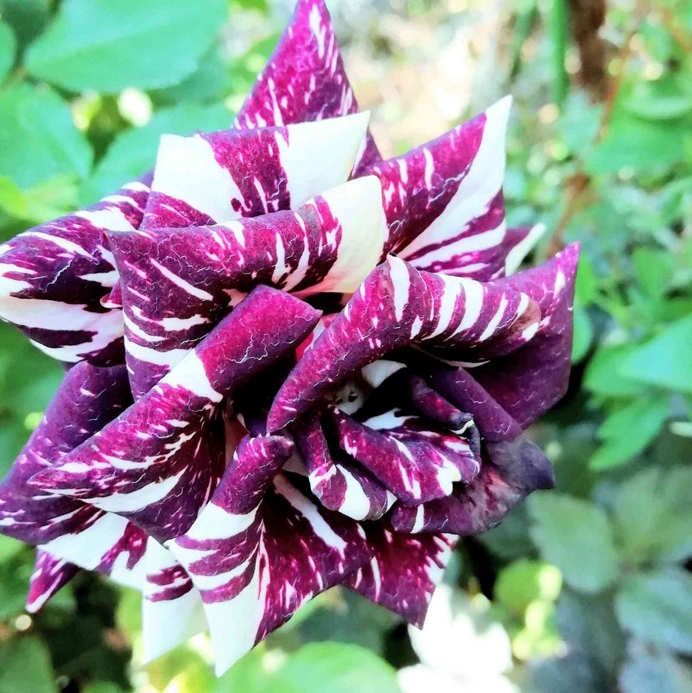 ワタシ的には、呪文を唱えるとあ〜ら不思議、紫と白いバラが混ざりあって世にも美しい模様になりましたとさ📜