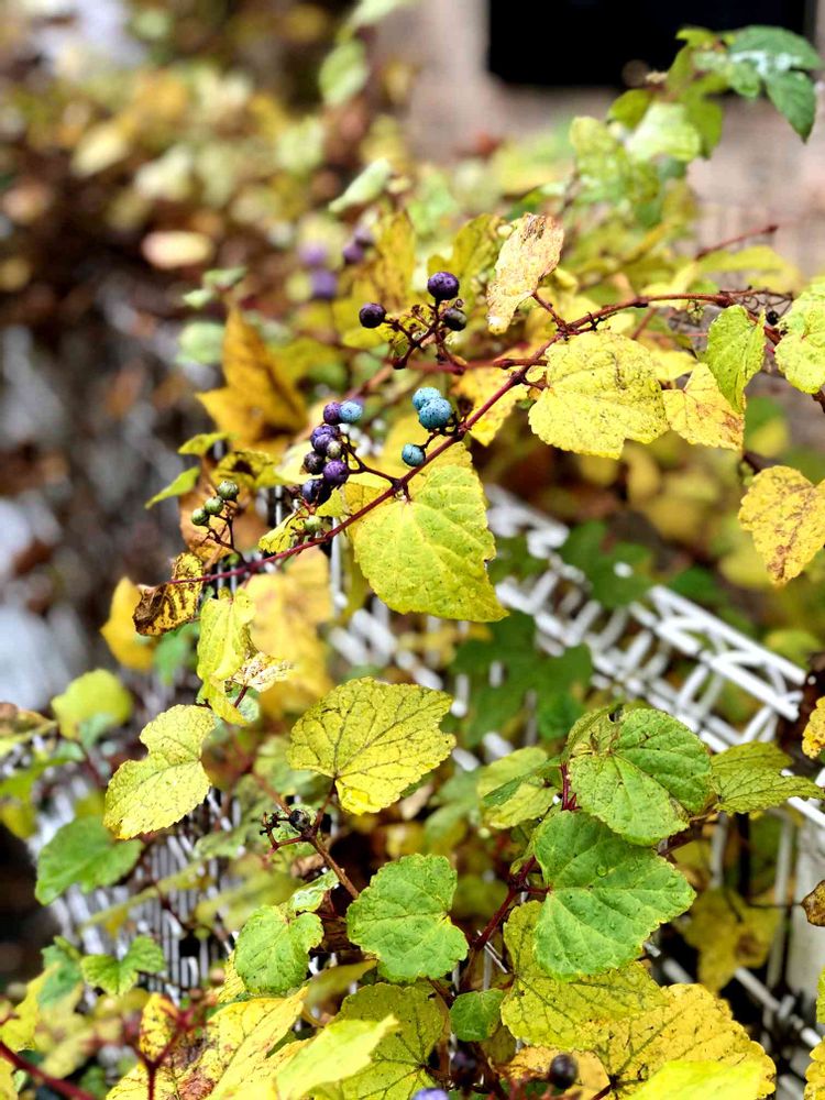 家の北側フェンスに自生?して毎年、楽しませてくれる野葡萄🍇
