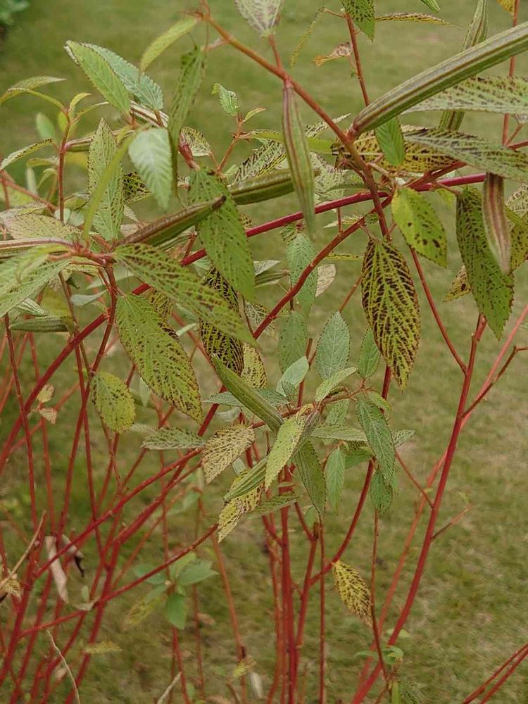 モロヘイヤの茎も紅葉して実も大きくなりました☺