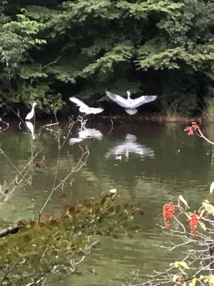 2羽の白鷺撮ってたら、タイミングよく降りて来たんです。慌てて何回もシャッター押しました。っていうか携帯なので