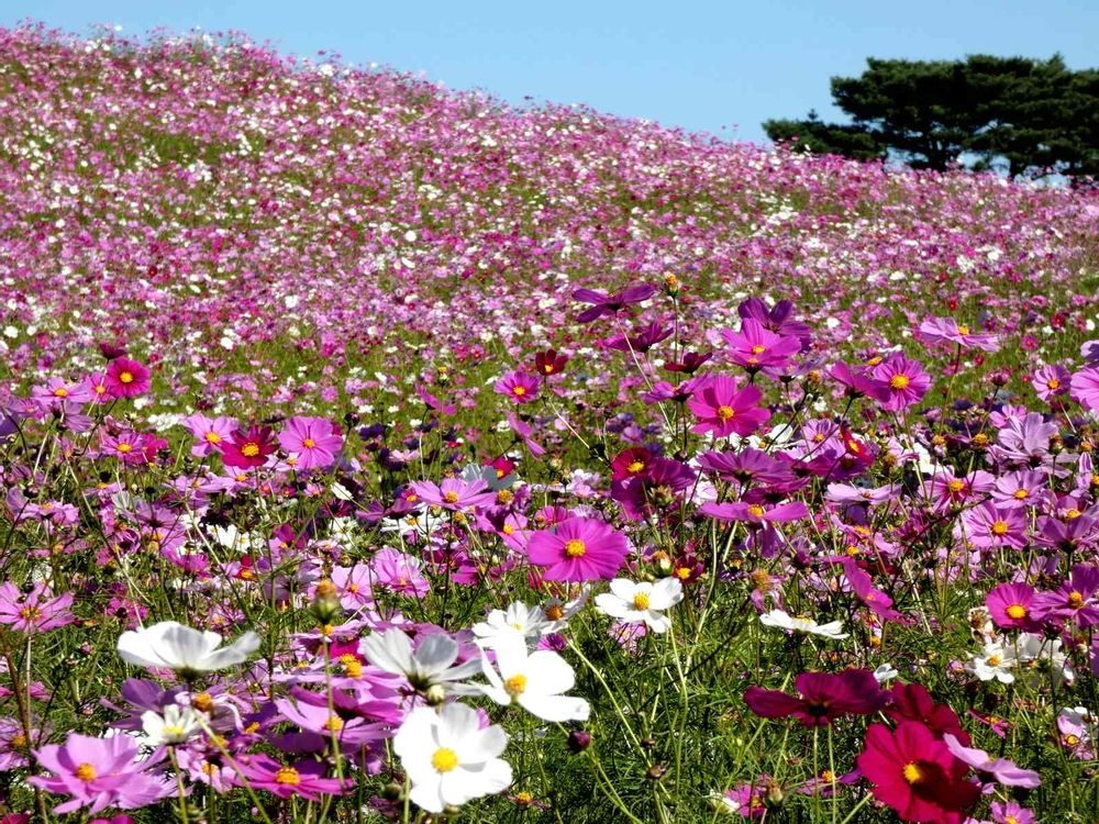 お出かけ先,コスモス畑,青空の下の投稿画像