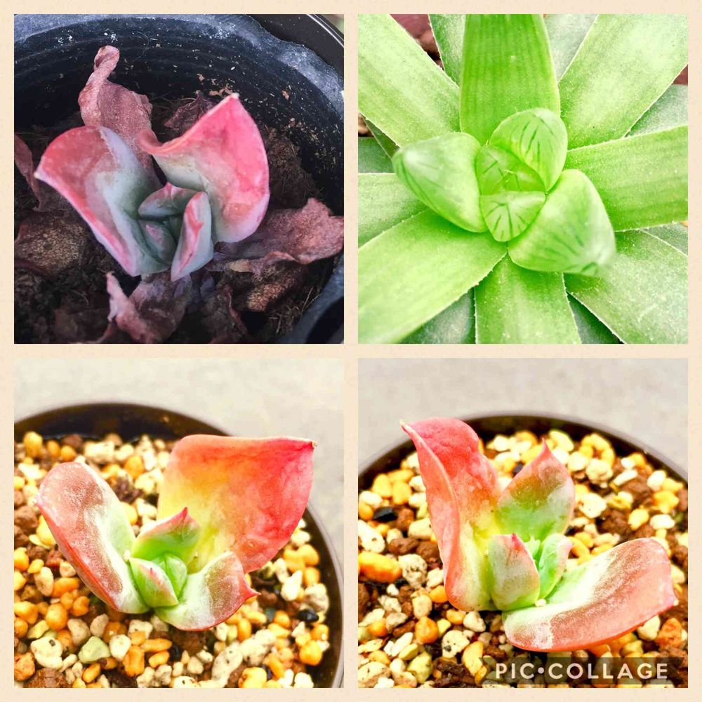 右上のは写真ではうまく伝えられないのですが、とても綺麗な、緑晃(ハオルチア×ガステリア)の成長してる中央部です🌱✨