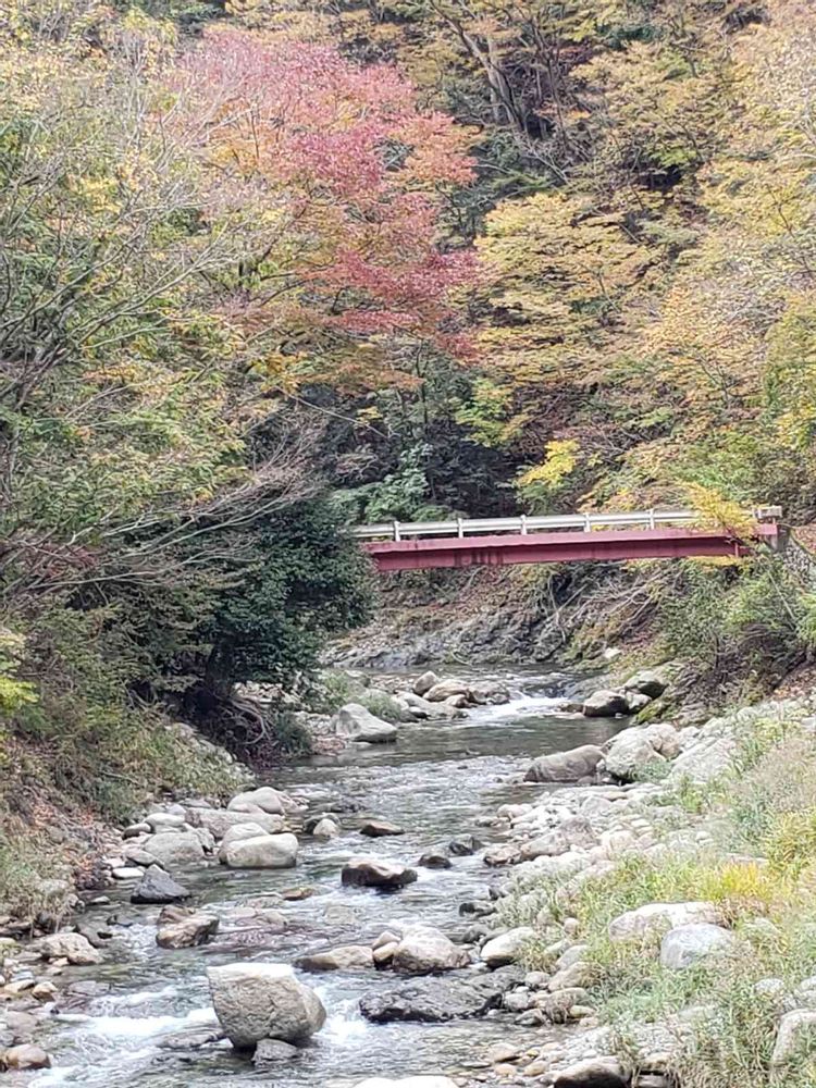 田舎の渓谷の紅葉👌💕いいですよ
