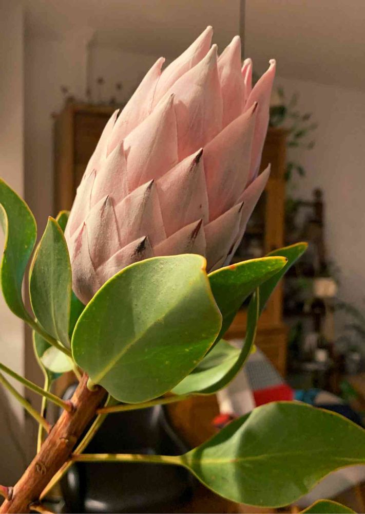 切り花のプロテア、初めて買ってみたんですが、少しずつ開く様子、見ていて楽しいです☺️