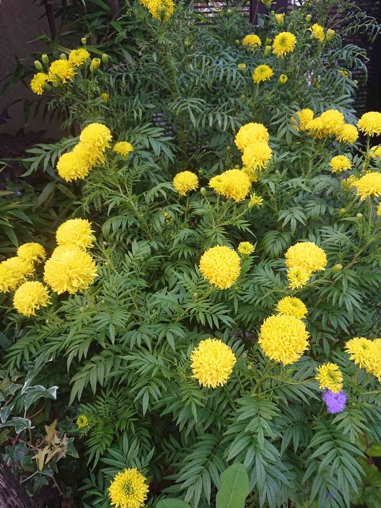 ご近所さんの玄関前にマリーゴールドが元気いっぱい咲いていました😃💕