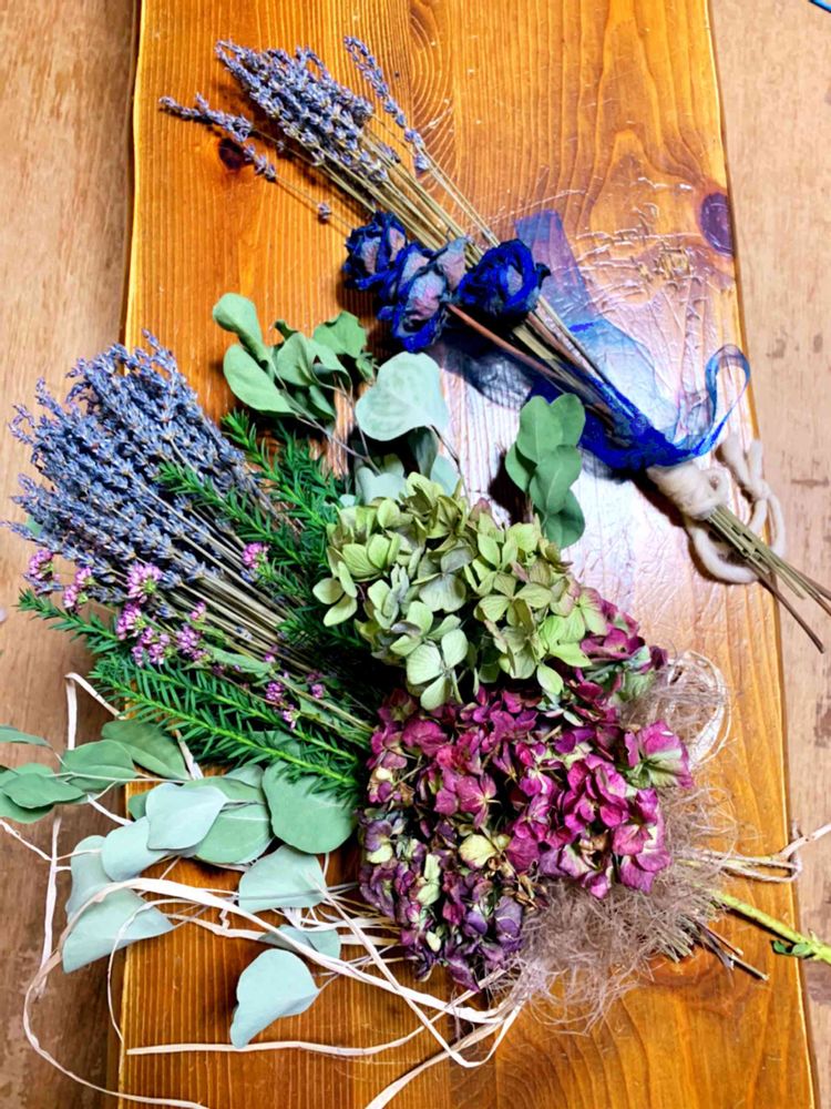 ラベンダーは、ラベンダーだけ束ねるののが大道だと分かってるんですけどね💦