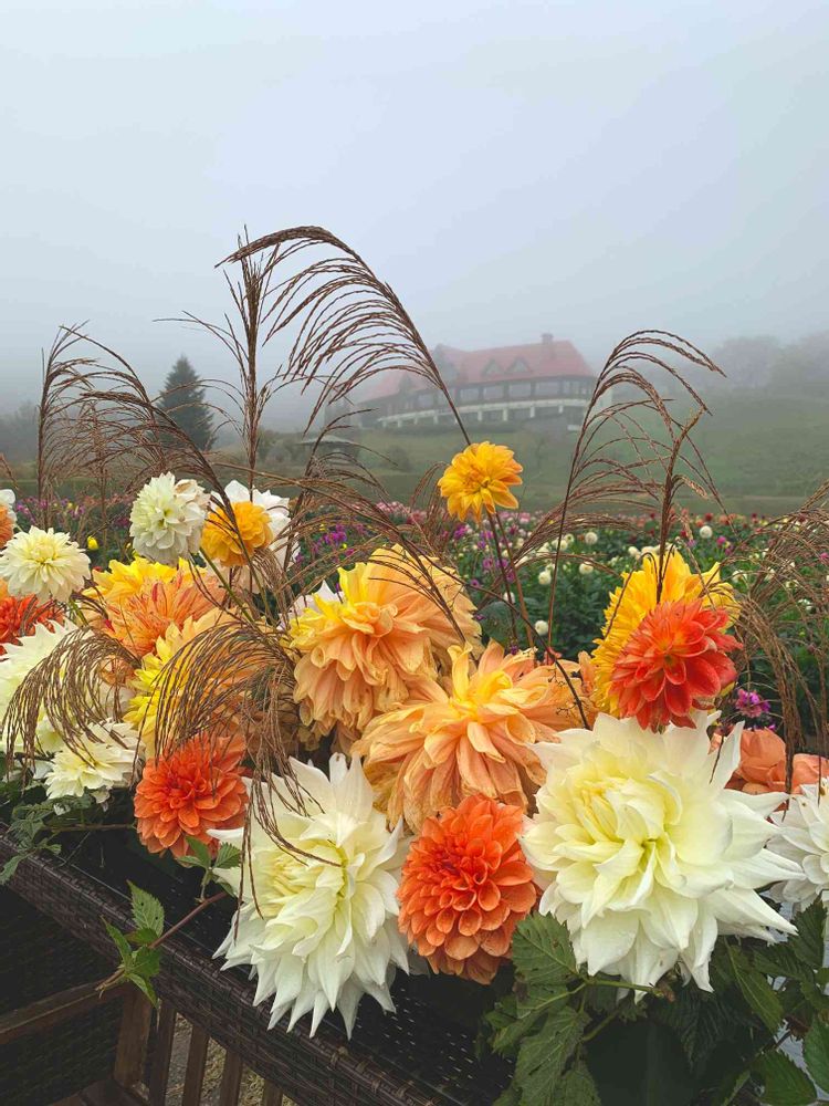 私は赤やピンクのダリアの方が好きだけど、自分では作らない色合わせだから新鮮だったわ👍🏻