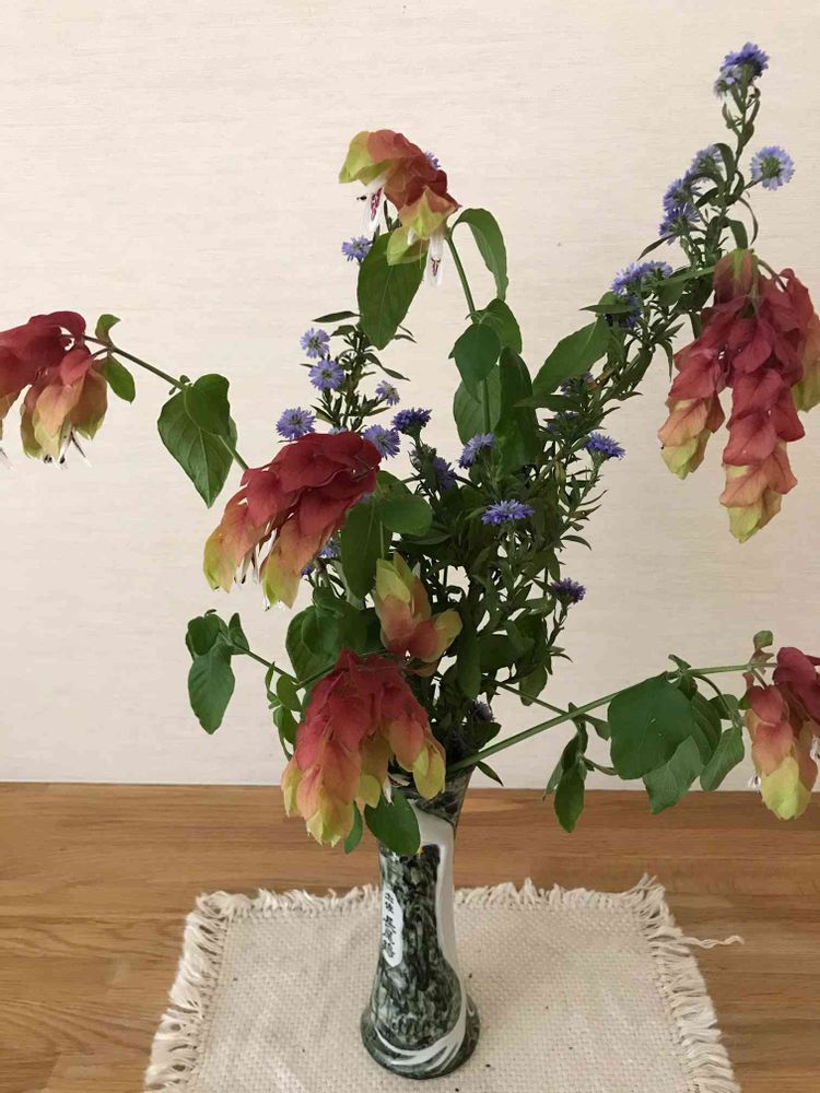 この花の名前が知りたかったのです!コエビソウって言うのですね😊
