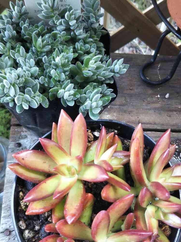秋らしい色の多肉を見つけたのでget💕、上のセダムは初めて見ました💓セダムとしか書いていませんでした。シルバーっぽくキレイ✨