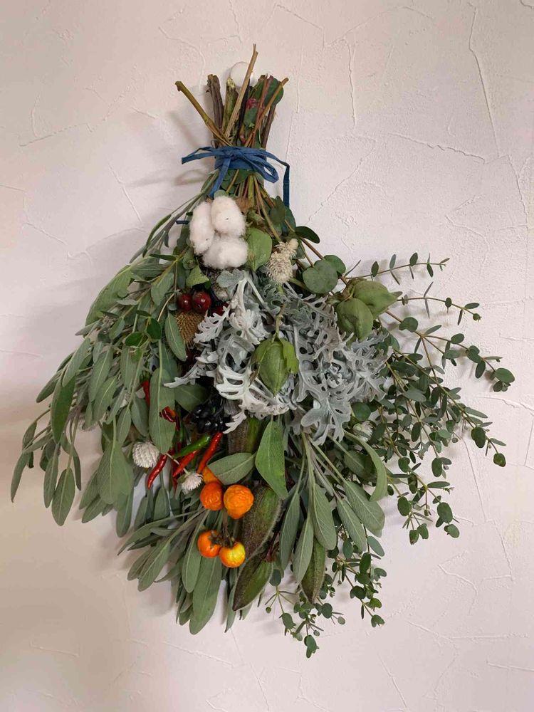 お庭の草花でできたスワッグ とっても 素朴で 壁に飾られているのを 想像すると 安らぎを 感じます😀
