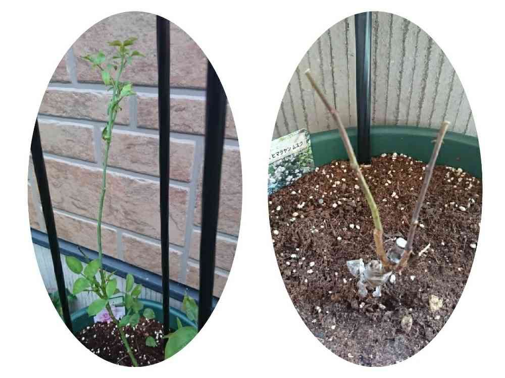 一緒に置いていた、ポールセンローズキヨーと、ネザ、ブルームーンも、同じような症状で、どんどん枯れて来たので、ポールヒマラヤンムスクだけを隔離して、様子を見ていたところ、他のは、なんとか新芽が出てきてるのでホッとしてます(^_^;)