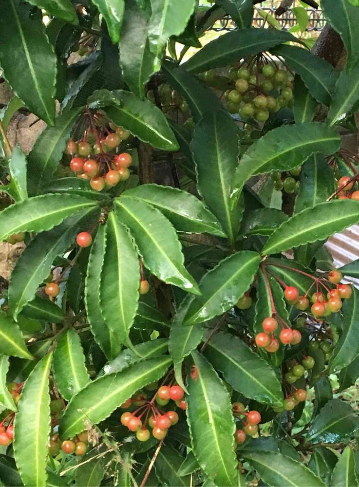 万両、色づいきました💕モッコクの木の下にひっそりと。