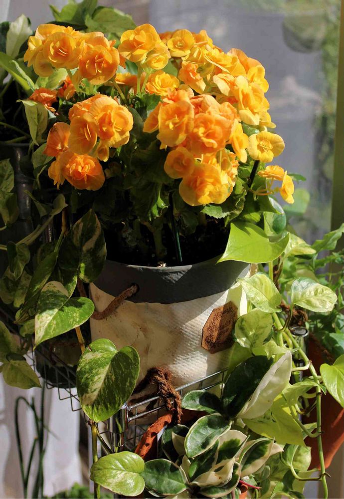 窓辺のベゴニアやポトス