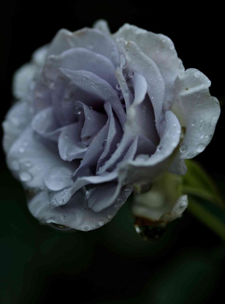 雨上がりの薄暗い朝は、青バラ撮影に抜群ですね。