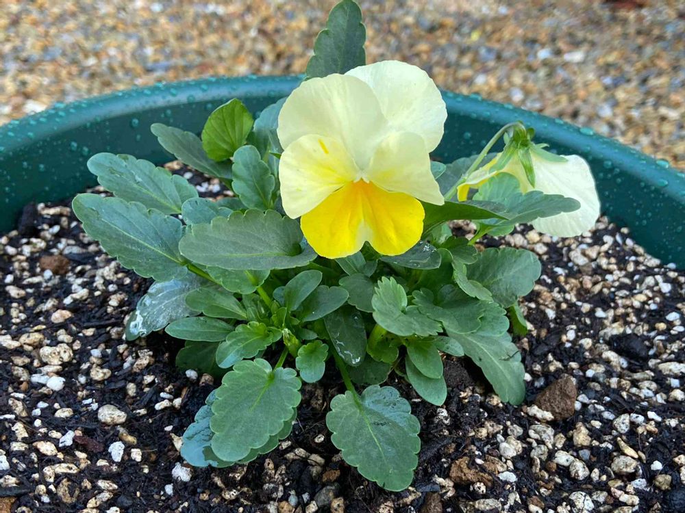 こちらはよく咲くスミレ。レモネードです。100円でした。ポットから出したら、さすがの根張りでした。