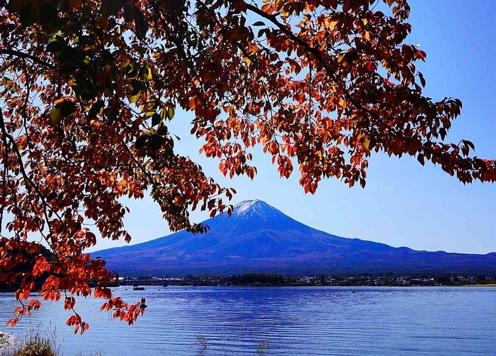 桜の葉🍁も素敵🧡富士山も、湖も青く見える‼️🗻…不思議ですねー👍🎶
