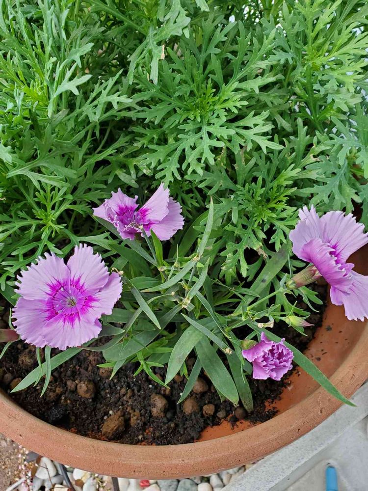 種類の違う撫子さんと寄せ植えにしました。
