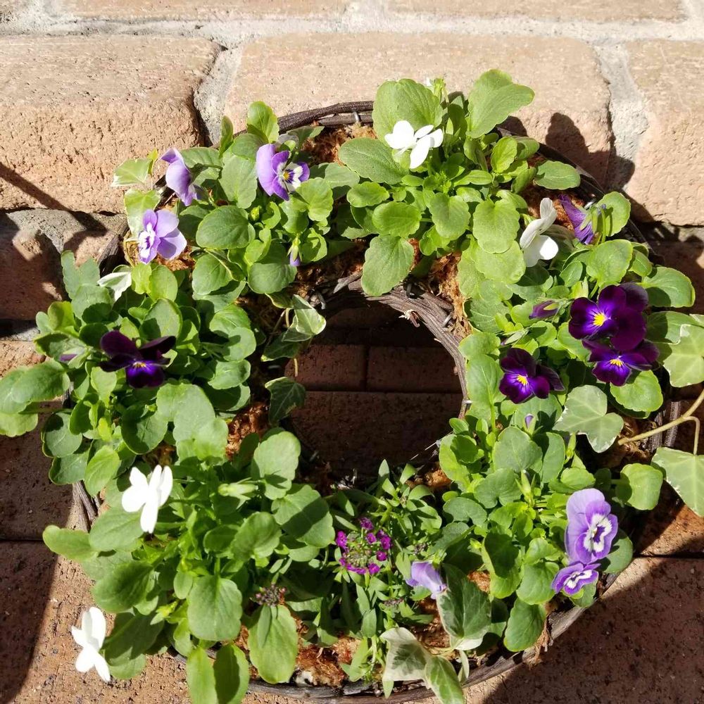 ビオラのリースも作りました🍩これからモリモリになってくれるといいのですが…ももかのうみ、くじら、しろです。